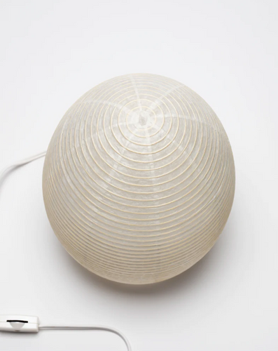 The lamp adds an organic wabi-sabi component to your interior while providing a subtle warm glowing illumination.