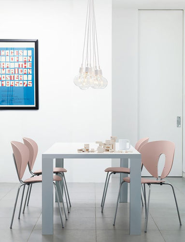 Designed by Swedish designer Mattias Ståhlbom, the E27 Pendant is the reduction of the pendant lamp to its most essential elements. Perfect in it’s simplicity, each light consists of just a bulb, socket and cord. The E27 is inspired by the Edison screw base, invented by Thomas Edison to be used with incandescent light bulbs. The socket is made from silicone and is resistant to fading. Includes a 40W bulb and requires hardwired installation.