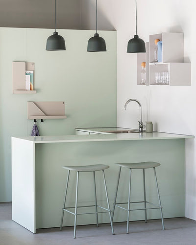 The traditional pendant silhouette receives a poetic reinterpretation with the Grain Lamp. Simple and elegant, the lamp has small grains of fiber in its surface, creating a subtle texture and change in the diffusion of light. The pendant includes an LED lightbulb that lasts for up to 10,000 hours and provides a warm, natural glow.