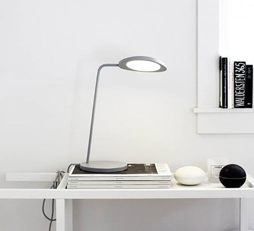 Leaf successfully combines a light and elegant design with an energy-efficient LED technology. Though the design is minimalistic and straightforward, a soft asymmetric geometry gives the lamp an organic and friendly appearance. Depending on the viewing angle and how the shade is turned, the lamp will subtly transform its shape to create a graphic and leaf-like silhouette in the room. Touch button technology with a built in dimmer.