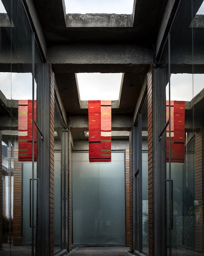 ROSE GARDEN is a Kilim rug. Kilim is the name for a thin, flat, tapestry-woven, graphic style rug. It is made by weaving the horizontal yarn (weft) through vertical yarn (warp). The rug is woven so tightly that the warp is barely visible. This makes for a very durable rug, that can handle weight and movement.