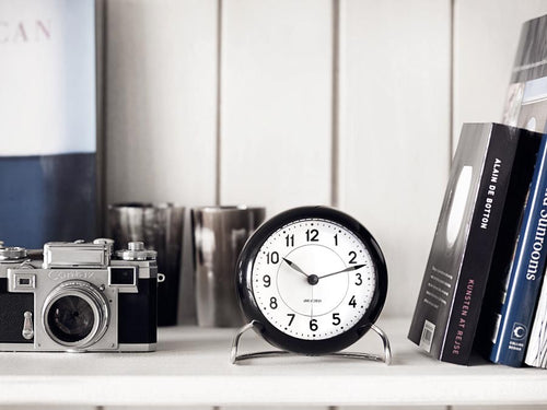 Arne Jacobsen’s black Station table clock is ideal as an alarm clock with useful detailing in a calm bedroom, as an element in the bathroom or as a stylish detail in a bookcase in the living room. With its classic styling, the clock makes an ideal gift for all design aficionados. Arne Jacobsen created the Station table clock in 1939 in connection with a project for the electrical goods manufacturer LK. Since then, the table clock – with reference to the original drawings – has been updated to bring it in line with today’s standards for alarm clocks. Accordingly, the clock has a light and a snooze function, both controlled touch-free thanks to an invisible sensor at the top of the clock.