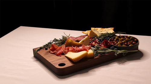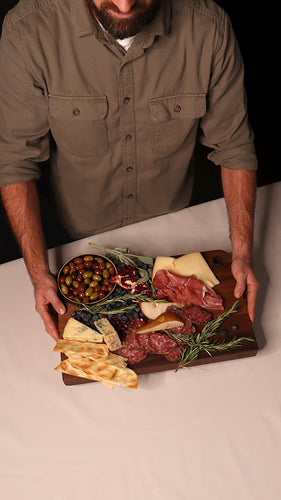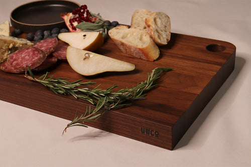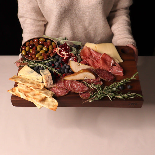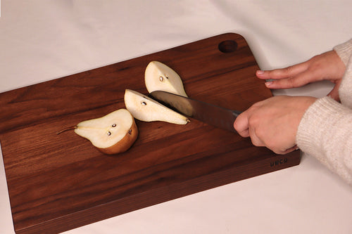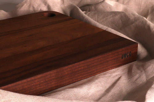 The small wooden cutting boards are ideal for kitchen prep, sturdy for chopping and delivering ingredients into the pan. The larger cutting boards become gorgeous grazing boards for cheese, charcuterie, and desserts. The wood is finished with a food-grade mineral oil.