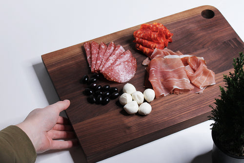 Using attractive wooden cutting boards as serving platters is one of more rewarding kitchen hacks out there—and we promise this board won’t let you down.