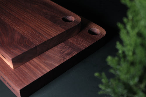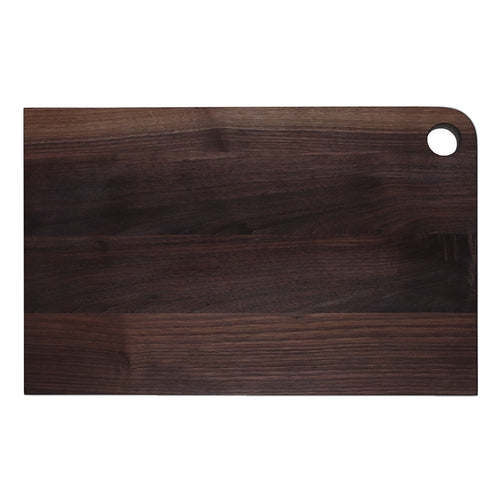 Handcrafted in Canada from two beautiful North American hardwoods, black walnut and white oak, the single curved edge-grain construction provides these wooden cutting boards with refined character as well as toughness. The utility hole makes it easy to handle or hang when not in use.