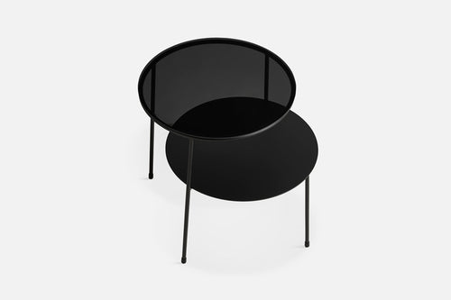 Duo Side Table, Black Painted Metal, Dark Smoked Glass Top