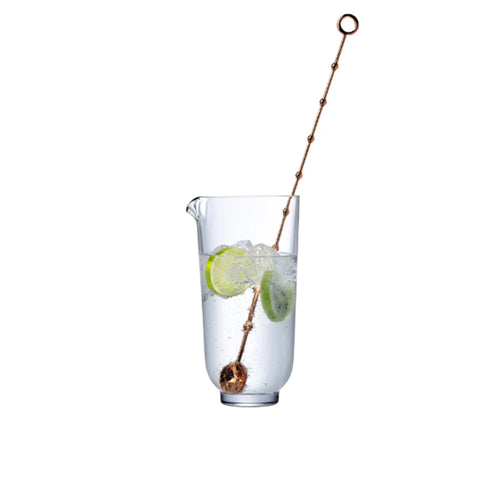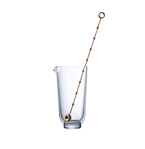 Part of the NUDE Hepburn series designed by Brad Ascalon, this cocktail duo comprises a mixing glass and a metal stirrer. Sculptural in its simplicity, the design features the collection’s signature elegant volumes and the contrast of crystalline glass and glossy copper. Also available in the same range are a cocktail shaker, martini, coupe and long glasses, plus an alchemy glass for more intensely flavoured drinks.
