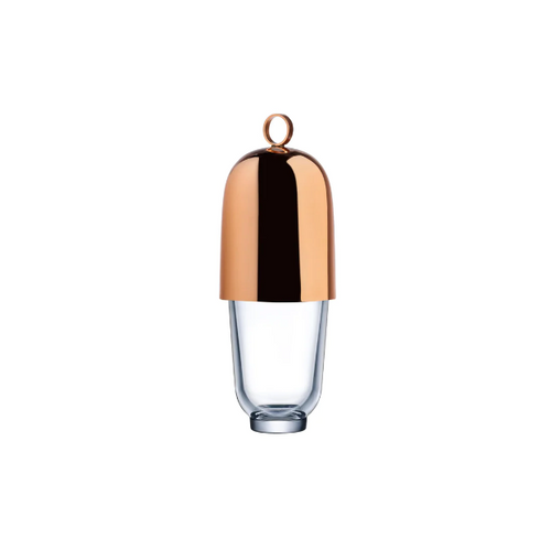 The NUDE Hepburn collection by Brad Ascalon presents a fresh, modern take on classic barware. Crafted from lead-free crystal, this cocktail shaker comes complete with a metal top featuring a highly polished copper finish. With its sweeping curves and a textural contrast, this design is proof that the traditional glassware works beautifully in a contemporary context. Long drink, low ball and martini glasses are also available.