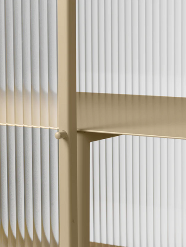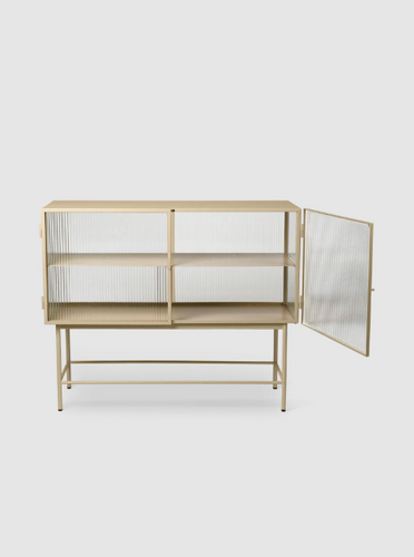 Perfect for concealing clutter in a busy hallway or as an elegant storage solution for a home office, bathroom or dining room, the sleek metal frame of our Haze Sideboard is coated with an elegant cashmere colour that blends seamlessly into any interior style. Reeded glass walls and doors continue the sophisticated expression, blurring the cupboard’s contents from prying eyes.