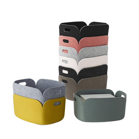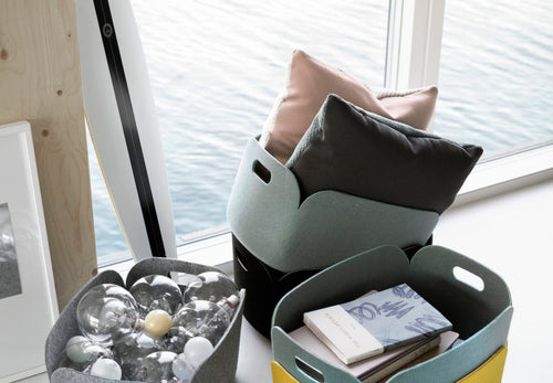 Designed by Mika Tolvanen for Muuto. The name “Restore” refers to the container’s polymer felt material, which is made from recycling PET bottles. We like that the Restore utilizes innovative and eco-friendly materials while still managing to look approachable and useable. These containers are great for magazines and toys and have been designed to be unobtrusive and friendly. The containers are strong enough that they hold their shape, but soft so they won’t scratch surfaces.