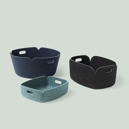 Designed by Mika Tolvanen for Muuto. The name “Restore” refers to the container’s polymer felt material, which is made from recycling PET bottles. We like that the Restore utilizes innovative and eco-friendly materials while still managing to look approachable and useable. These containers are great for magazines and toys and have been designed to be unobtrusive and friendly. The containers are strong enough that they hold their shape, but soft so they won’t scratch surfaces.