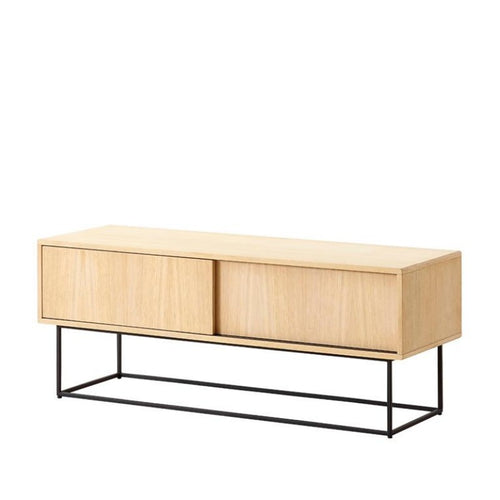 With clean lines and a simple expression, the Virka sideboard can be a part of a consistent design language or be a standalone object. The elegant sideboard is designed with sliding doors so it will never take up unnecessary space in your room. The strong geometrical frame elegantly lifts the sideboard above the floor and adds lightness to the design. Inside the Virka sideboard has one adjustable shelf in each side with room to let cables pass out the back making the design both functional and minimalistic.