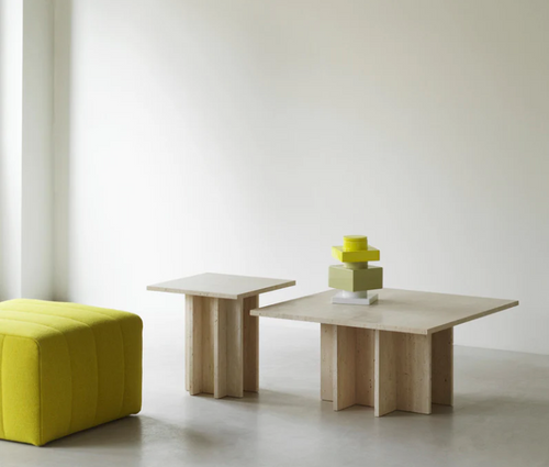 Edge is designed with minimalistic design principles for a timeless, yet captivating expression. The table is crafted from 100% travertine, an interesting and timeless material distinguished by its extraordinary structure and unique patterns. To minimize unnecessary waste, Edge is designed to utilize the way the travertine material is sourced. The natural stone is quarried from a travertine quarry, then cut into slabs of different sizes. Edge Coffee Table consists entirely of square travertine slabs in varying sizes, assembled in a simple, geometric construction. This way, the different slabs are used to make the most of the material.