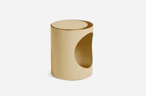 TABL is a graphic metal side table designed from the idea of optimising material by providing the design with a new function without adding additional material. A circular part of the classic cylindrical base has been cut out and transformed into a functional tabletop. Consequently leaving a round, open space in the foundation for storage of books, throws or creative pursuits.