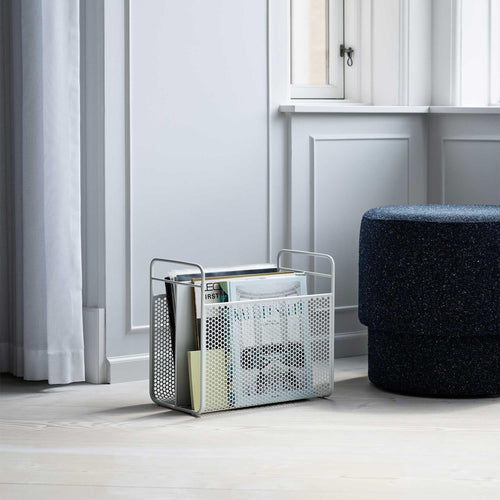 As a little revolt in a digital world, Simon Legald has designed the magazine rack Analog. Analog has a modern and underplayed design, which allows beautiful printed matter to come into its own.Oddly enough, the inspiration for Analog is taken from the digital world. The magazine rack's hole-patterned sides are inspired by the computer equipment of the 90's that had similar perforations for cooling down the electronics.While the details have a nostalgic nod to technology, the shape is classic: two separate compartments and practical handles form the basis for the design. The industrial, coated steel gives the rack a modern and masculine expression. With Analog, Simon Legald has created an unpretentious magazine rack that possesses a free and easy sense of coolness.