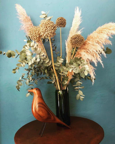 Charles and Ray Eames enriched the collage-like interior of their private home, the Eames House, with numerous objects and accessories that they brought back from their travels. For over fifty years, the figure of a wooden bird has stood in the centre of the living room – an artefact of American folk art that was evidently highly treasured by the couple, since it also appeared frequently as an accessory in photographs taken by Charles and Ray.