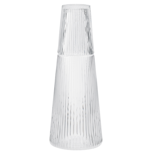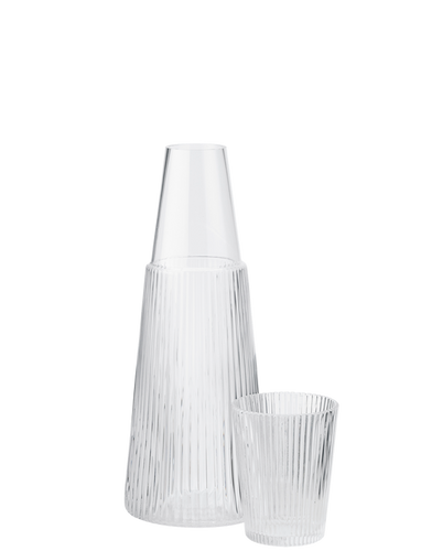 Francis Cayouette is the designer behind the Pilastro-series that have a sophisticated and elegant aura. The range was inspired by the elegant idiom of Art Deco, in which form and function merge. Art Deco dominated the architecture and design of the 1920s. The new Pilastro carafe with accompanying glass has the same sophisticated expression, clean design language and grooved surface as the existing products in the series. The carafe can hold 1 l and comes with a smaller glass 15 cl that also serves as a lid - a perfect set for the Home Office or the bedside table. Combined with the other designs in the series, you have a beautiful set for everyday life or guests, where the Pilastro carafe beautifies the serving of water or wine. Like the existing Pilastro drinking glasses, the carafe can withstand both hot and cold liquids.