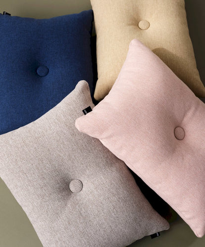 Characterised by the covered buttons in the centre of the cushion, Dot Cushion has become a HAY design classic. Offered in a variety of fabrics and textures, the cushions are available in a wide palette of versatile colours spanning neutral shades to brighter tones.