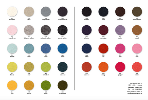 Parkhaus felt products are great for any space. They are very functional, and add a cozy felt feeling. Protect your tables or add some colour to a room! We have a large variety of felt coasters and placemats. Please contact us for details.