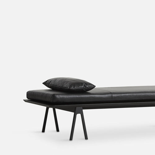 The level Daybed is sold separately. The daybed takes its name, Level, from a symmetry between the domestic and work environment; a generally sought-after condition. The supple leather and the sturdy wood components elevate the simple whole. Allow yourself to take a break while keeping both feet on the ground. Add a leather pillow to the mattress for extra comfort or decoration.